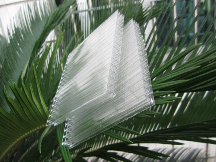 说到聚碳酸酯板(PC阳光板),大家最常见的用途是在温室大棚。它集遮阳挡雨,保温透光。近年来,聚碳酸酯板材成为建筑装饰理想的采光材料之一,在全球范围内都得到广泛的应用! 四层阳光板是在双层阳光板的基础上增加了两层内壁,从形状上区分为四层阳光板和双层阳光板。双层板的厚度一般在4mm-10...